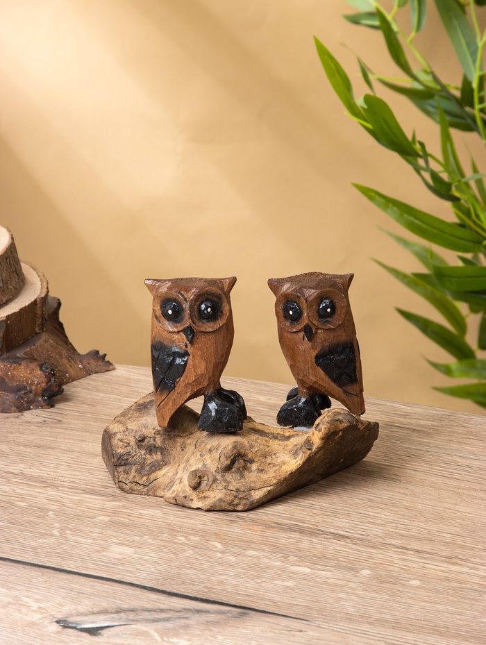 Сувенир интерьерный "Совушки" 15х9х14 см, дерево