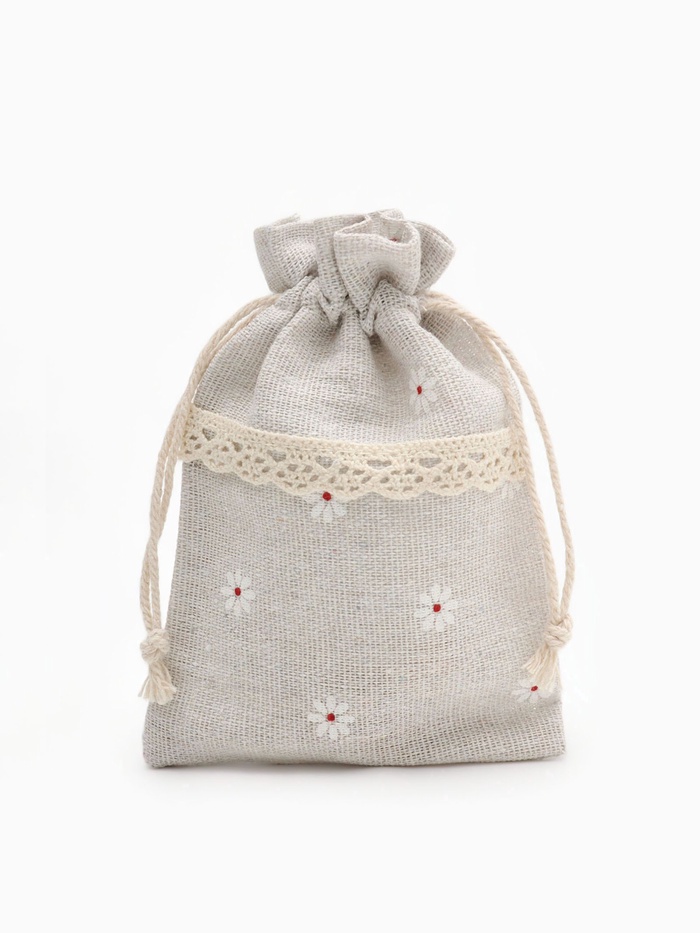Набор мешочков подарочных 50 шт. «Лён» с ромашкой 10×13.5, цвет кремовый