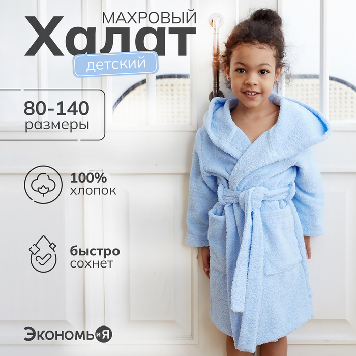 Халат махровый детский Экономь и Я р. 28, цв.нежно-бирюз, 100%хл с AIRO, 320 г/м2