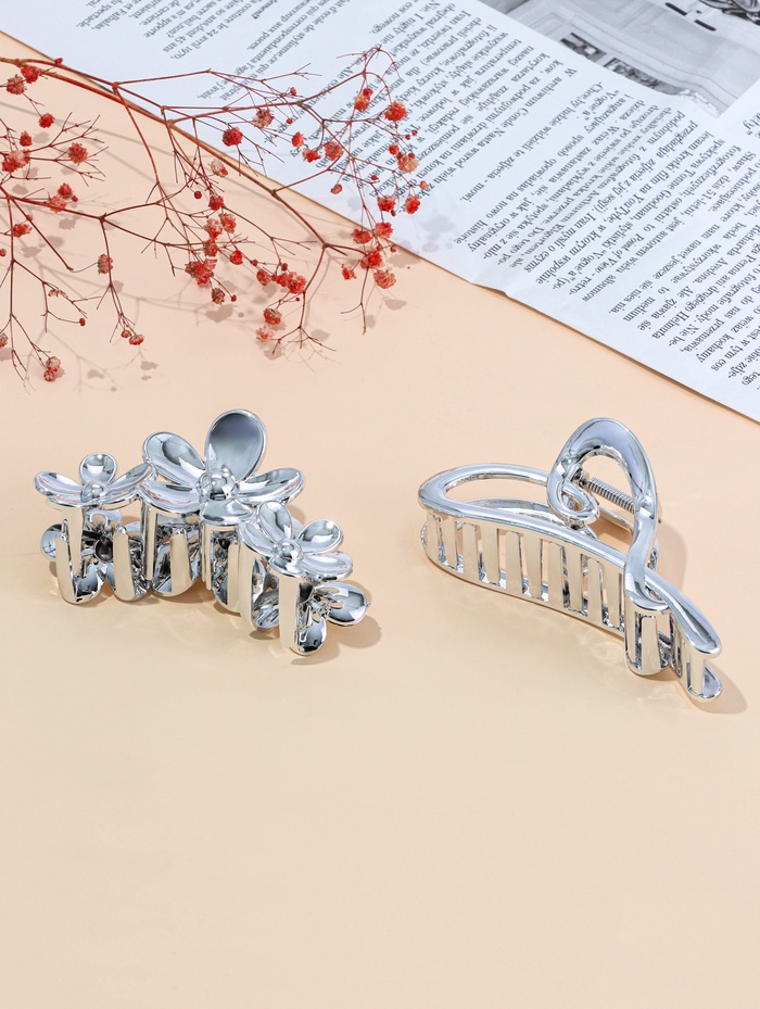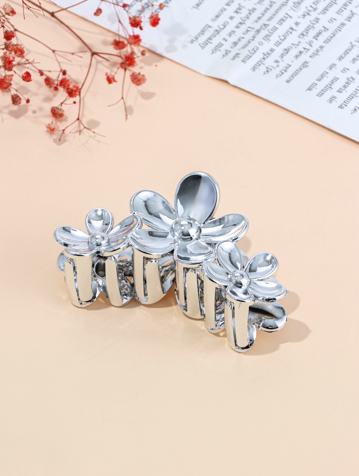 Краб для волос "Хилман" цветы, 11 см, серебро