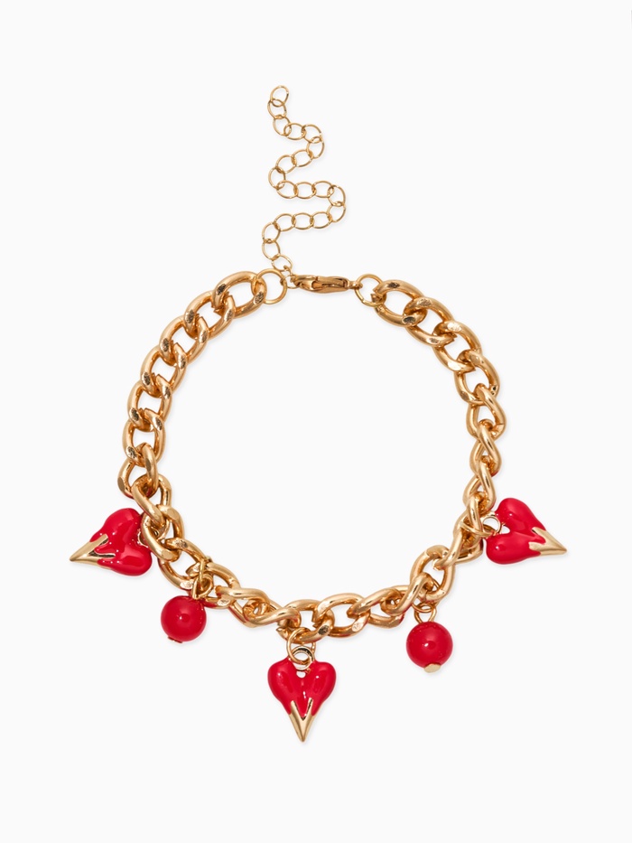 Браслет на цепи «Вишневый рай. Сердечки», красный в золоте