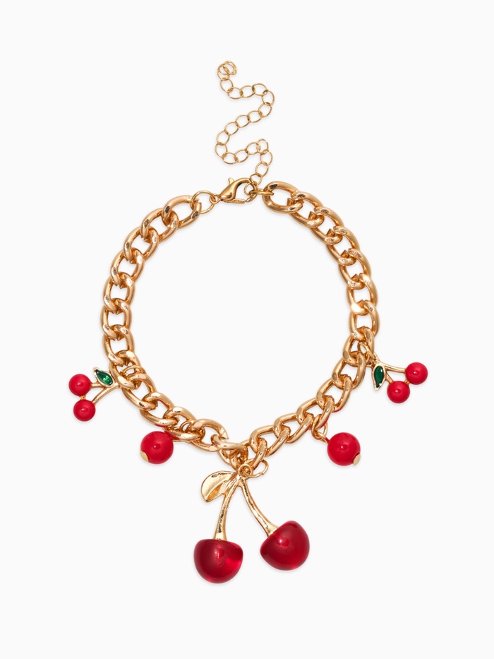 Браслет на цепи «Вишневый рай. Большая вишенка», красный в золоте