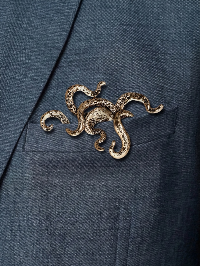 Брошь для кармана «Осьминог», цвет чернёное золото