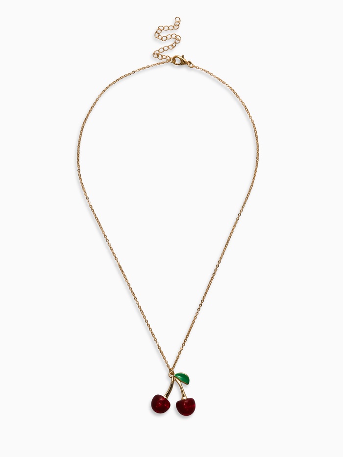 Кулон на цепочке "Черешня", цвет бордово-зелёный в золоте 40+удл