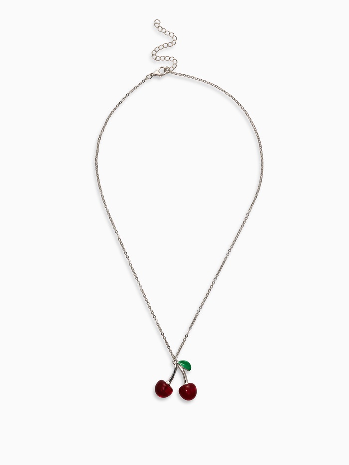 Кулон на цепочке "Черешня", цвет бордово-зелёный в серебре 40+удл