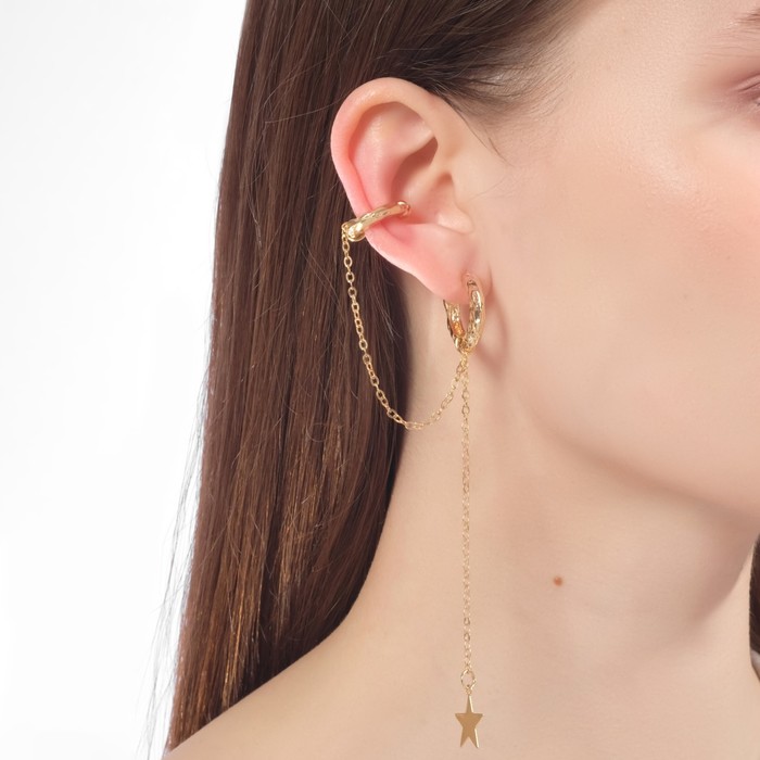 Серьга «Кафф» звезда на цепочке, цвет золото
