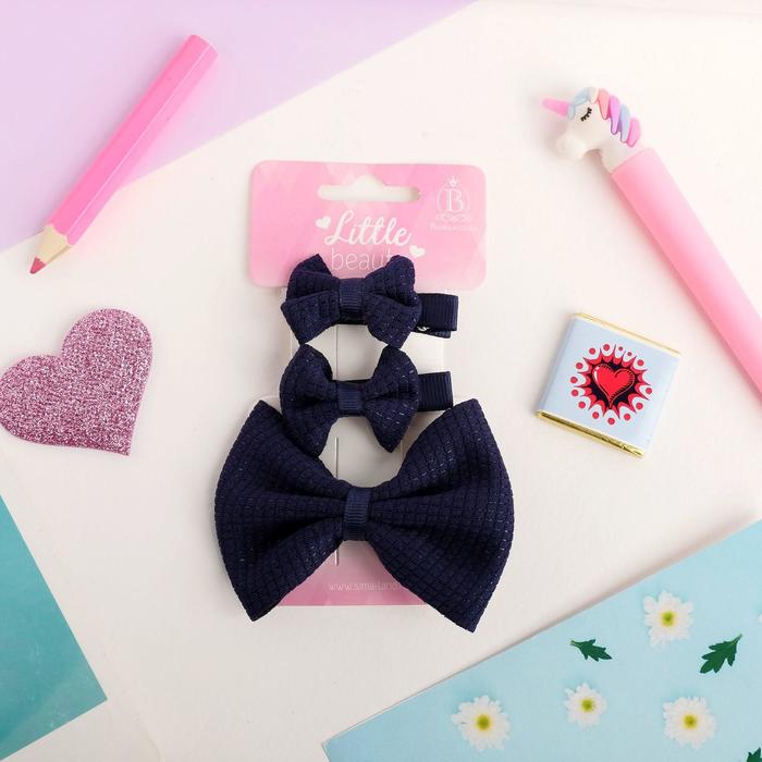 Бант для волос на резинке «Школьница», сердечки, 12 см, синий
