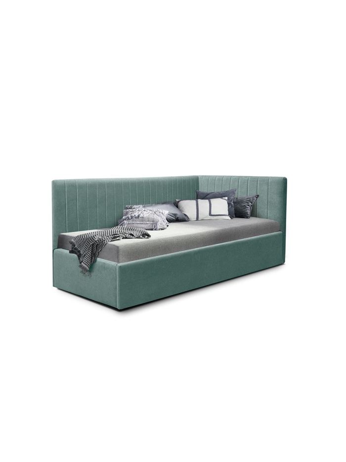 Кровать подростковая «Фрейм Страйп», левая, с подъёмным механизмом, спальное место 900×2000 мм, ткань вивальди 19, цвет бирюза