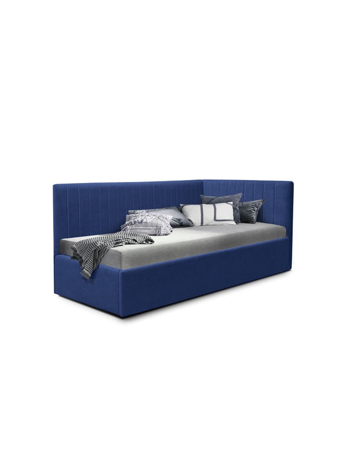 Кровать подростковая «Фрейм Страйп», левая, с подъёмным механизмом, спальное место 900×2000 мм, ткань барон 15, цвет синий