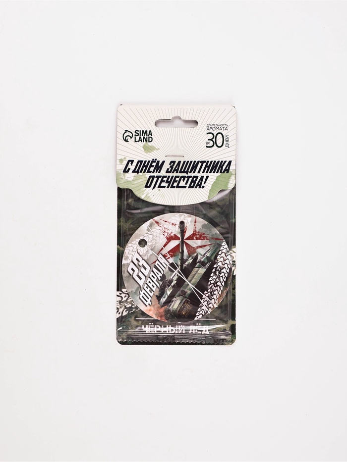 Ароматизатор в машину бумажный круглый «23 Февраля», аромат чёрный лёд, 7.5×16.5 см