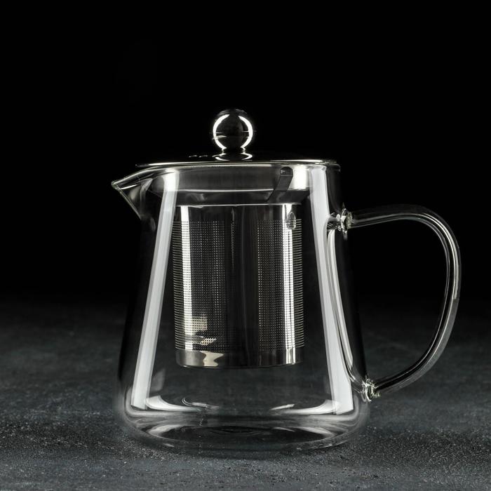 Заварочный чайник Доляна «Иллюзия», 1.25 л, с металлическим ситом, стекло, чёрный