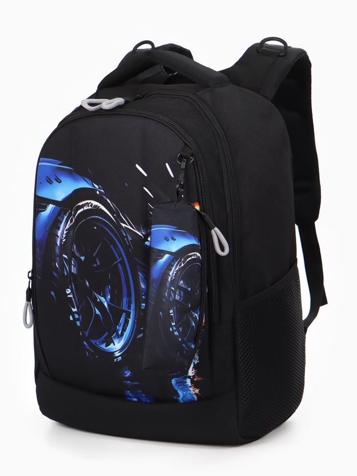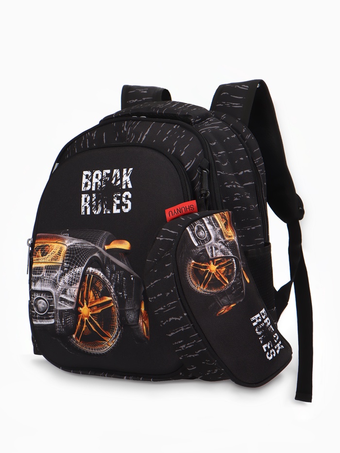 Рюкзак школ. с Эргон. спин. 32*17*41 см, +Пенал, мальчик, Машина, черный