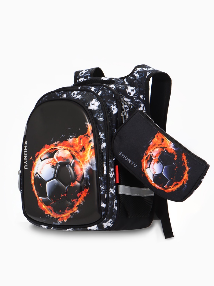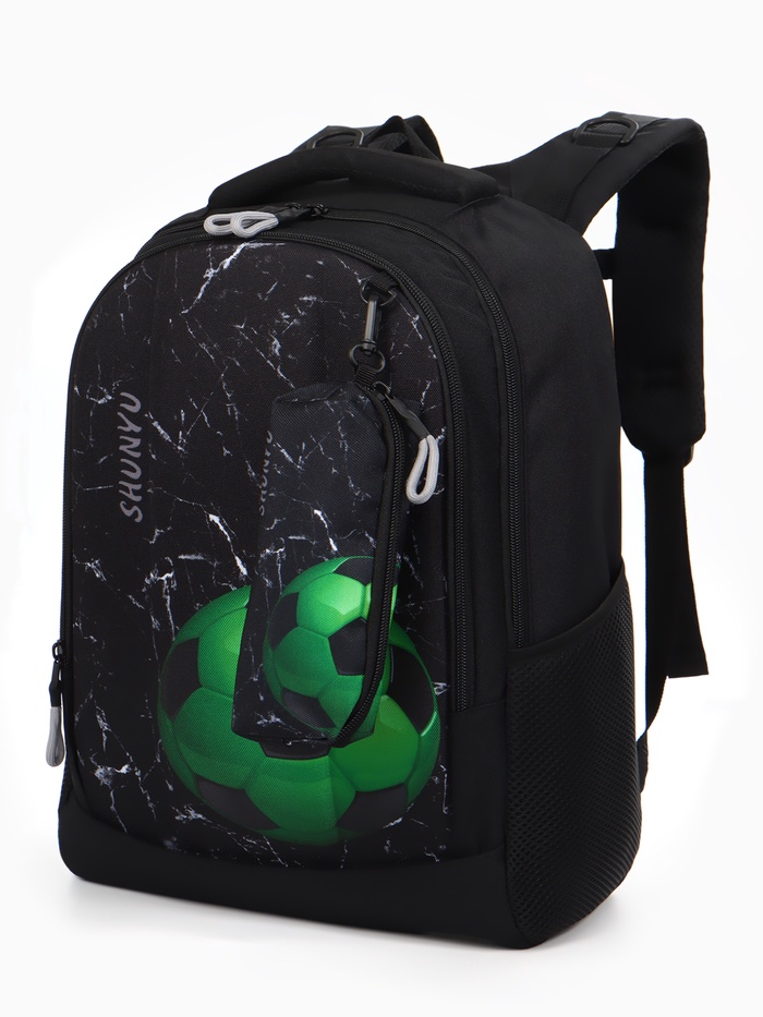 Рюкзак школьный для мальчика «Футбол», с пеналом, эргономичная спинка, 29×13×38 см, чёрный