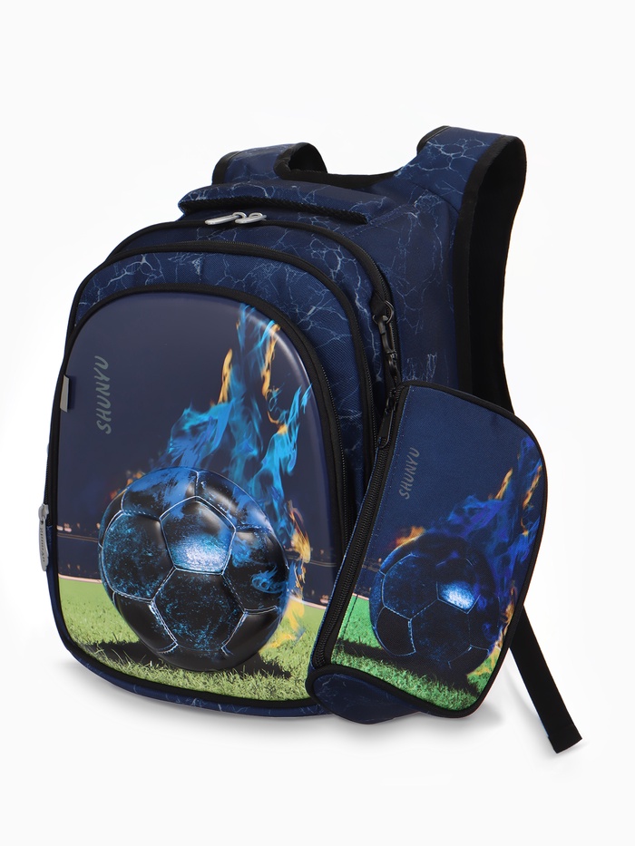 Рюкзак школьный для мальчика «Футбол», с пеналом, эргономичная спинка, 29×13×38 см, синий