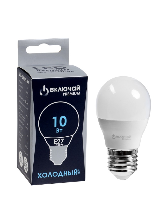 Лампа светодиодная Включай, G45, 10 Вт, E27, 950 Лм, 4000K, IP20, свечение нейтральное белое, матово