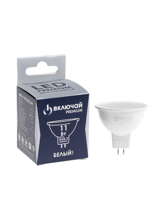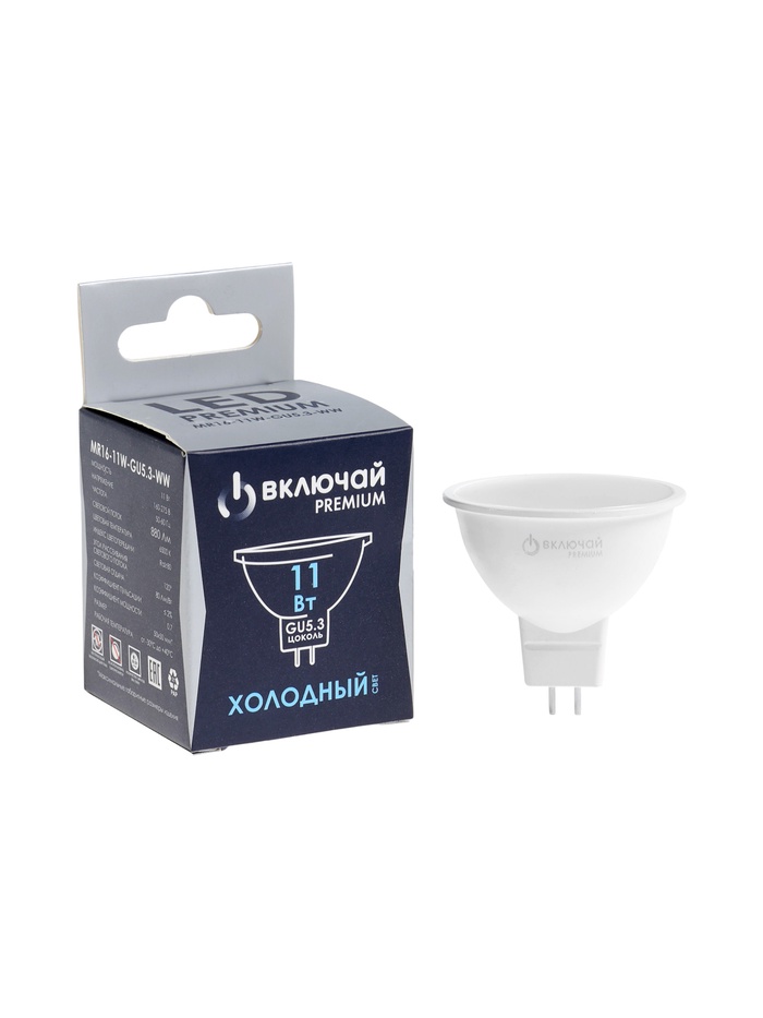 Лампа светодиодная Включай, MR16, 11 Вт, GU5.3, 880 Лм, 6500K, IP20, свечение холодное белое, матово