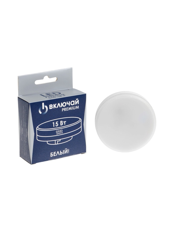 Лампа светодиодная Включай, Tablet, 15 Вт, GX53, 1425 Лм, 6000K, IP20, свечение холодное белое, мато