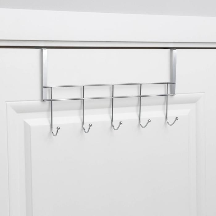 Вешалка на дверь на 5 крючков Доляна «Блеск», 38×8,5×22,5 см, цвет хром