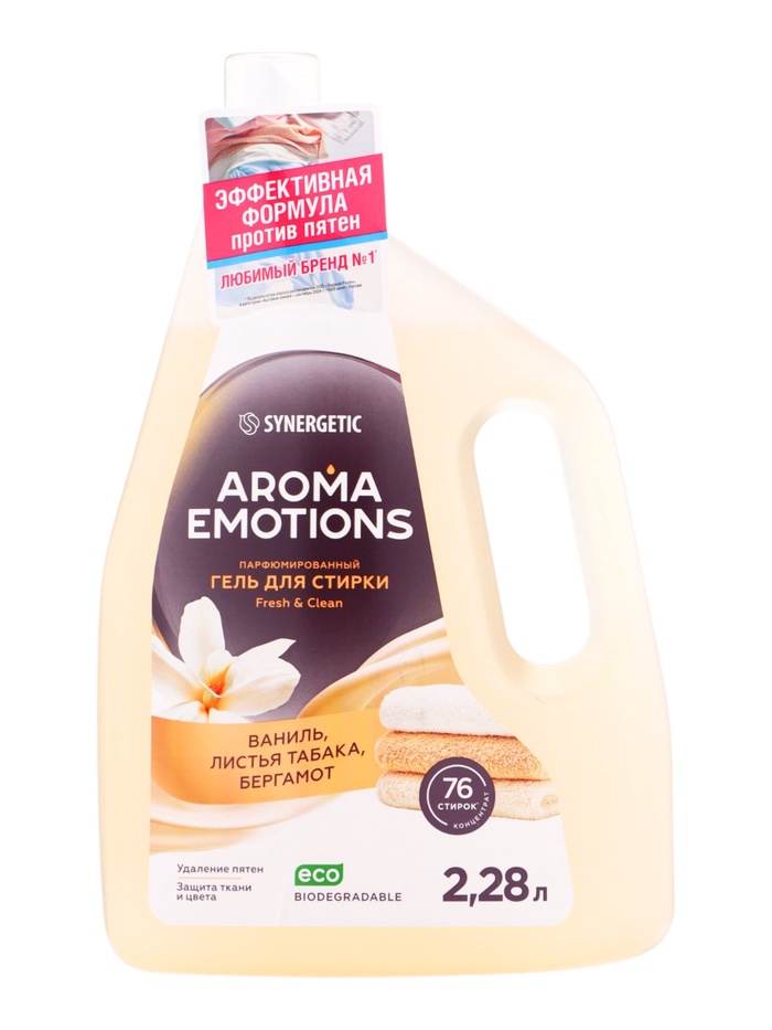 Гель для стирки белья парфюмированный SYNERGETIC ваниль, табак, бергамот, 2,28 л