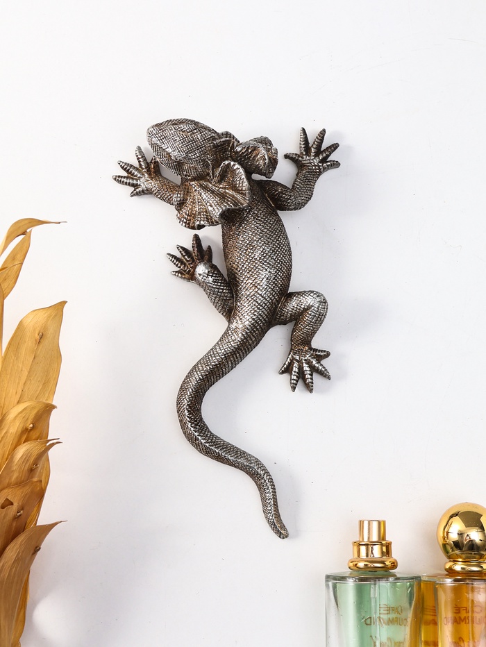 Панно настенное полистоун «Плащеносная ящерица», под чернённое серебро, 21×11.5×4.5 см