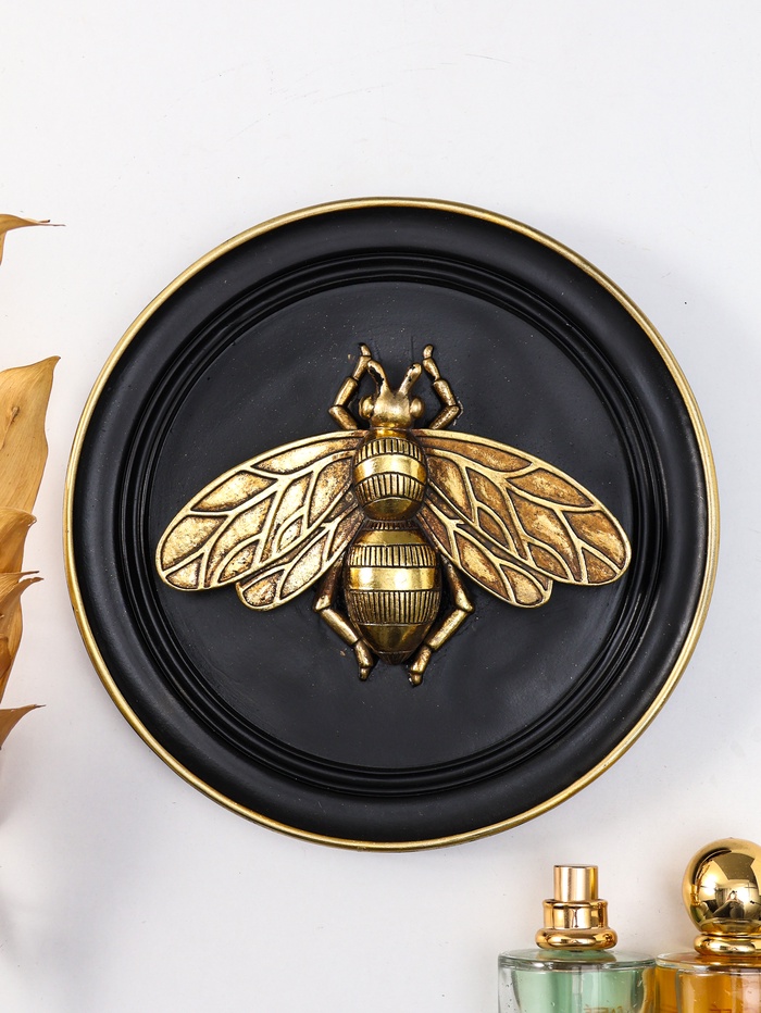 Панно настенное полистоун «Муха», чёрный с золотом, 19.2×3×19.2 см