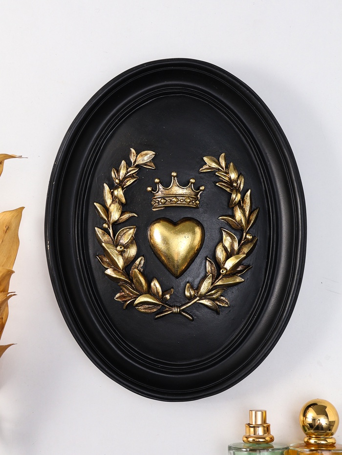 Панно настенное полистоун «Сердце с короной», чёрный с золотом, 20×2.5×26.2 см