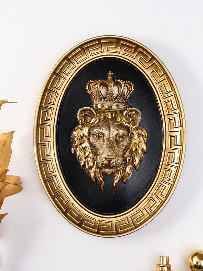 Панно настенное полистоун «Лев - царь зверей», чёрный с золотом, 20×4.5×26.2 см