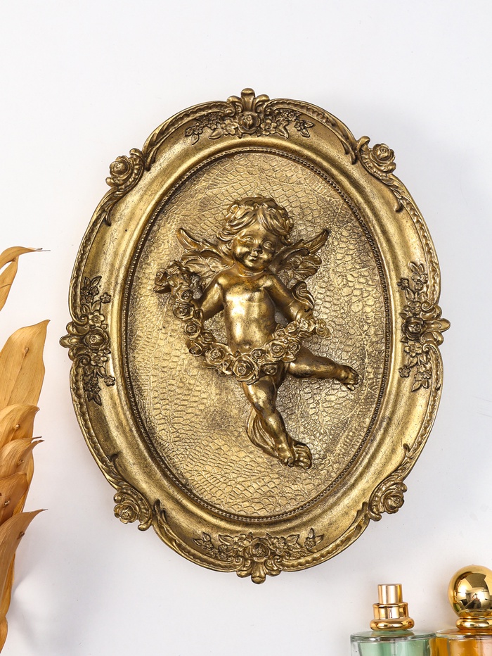 Панно настенное полистоун «Ангел с венком из роз», под золото, 21.5×4×27 см