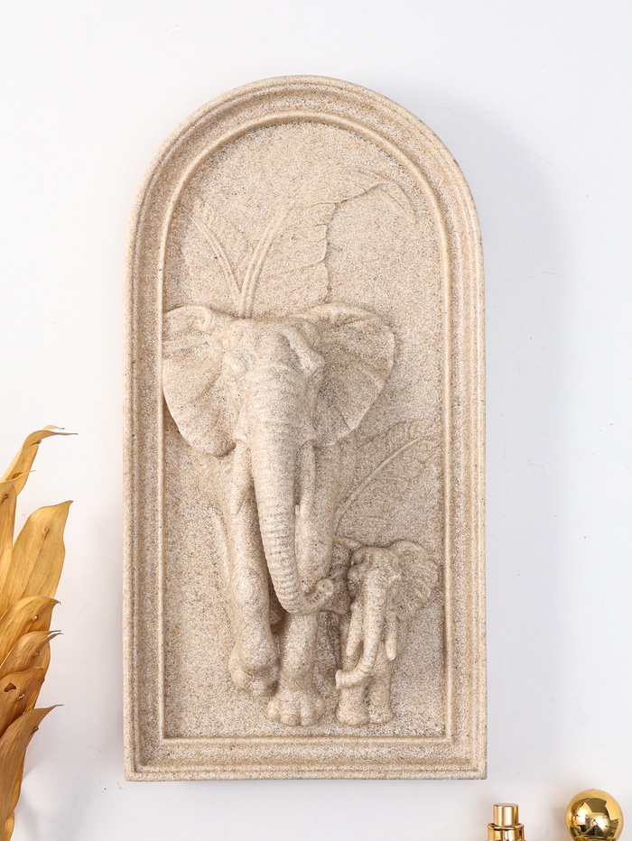 Панно настенное полистоун «Слон со слонёнком в джунглях», песочный, 19.2×7.4×37.2 см