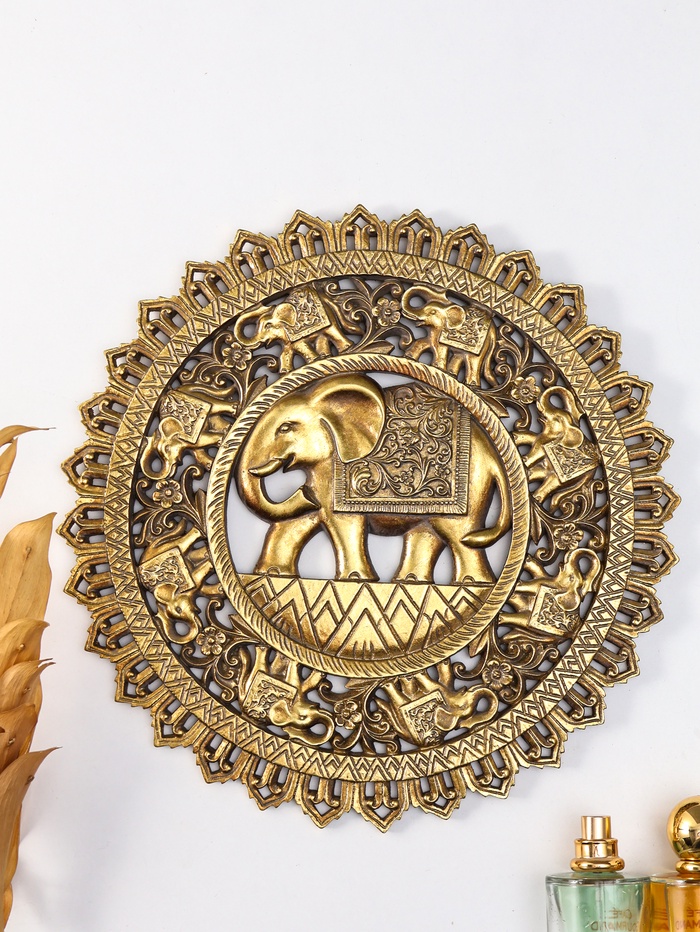 Панно настенное полистоун «Индийский слон. Мандала», под золото, 30×4.6×30 см