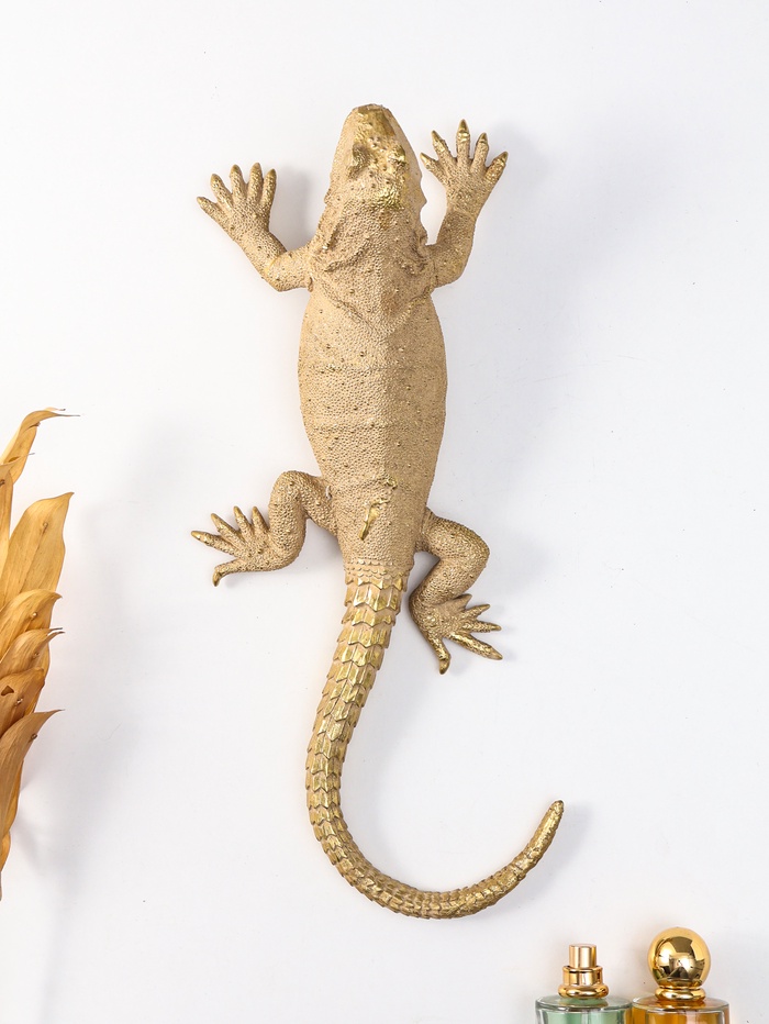 Панно настенное полистоун «Ящерица шипохвост», под золото, 38.7×16.9×9.5 см