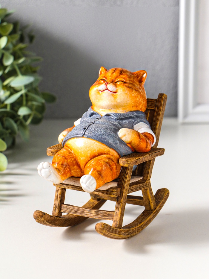 Сувенир полистоун лак "Пухлый кот в жилете, на кресле-качалке" 12х7,7х13,5 см