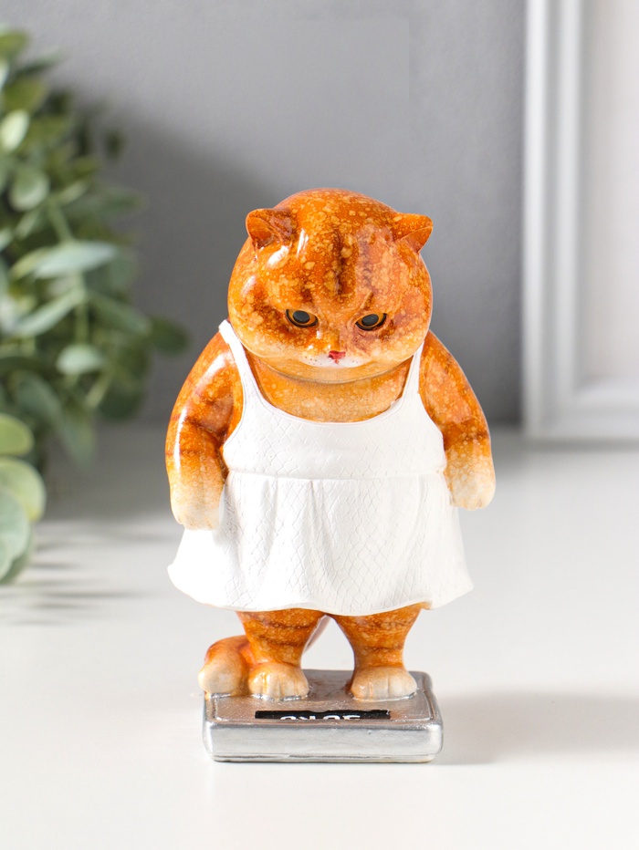 Сувенир полистоун лак "Кошка в белом сарафане стоит на весах" 7,5х7,2х12,5 см