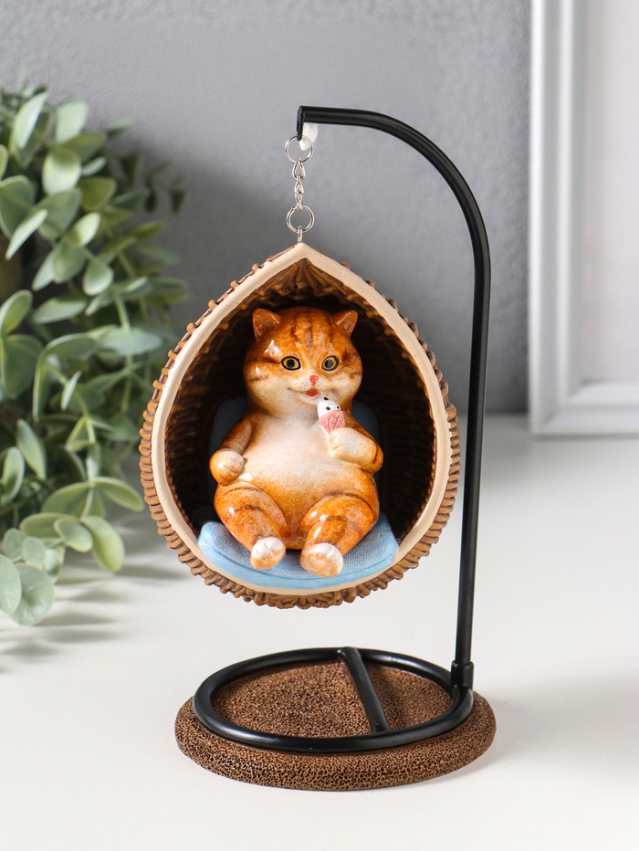 Сувенир полистоун лак "Пухлый кот ест мороженое, в кресле-качеле" 11,5х10,5х18 см