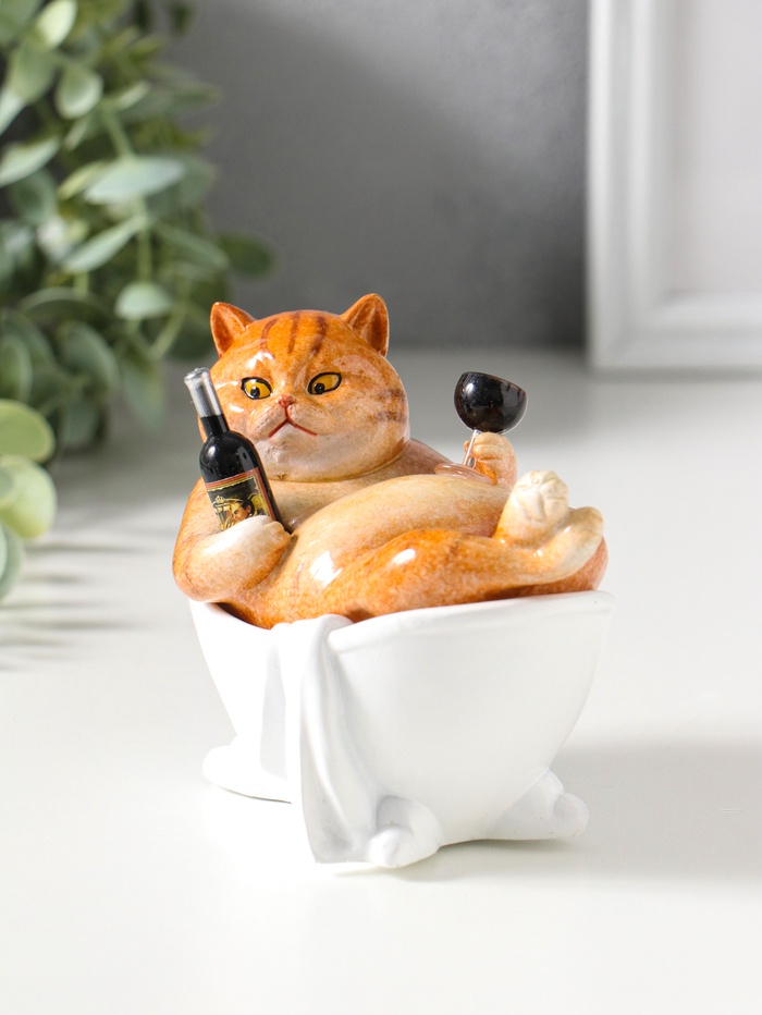 Сувенир полистоун лак "Пухлый кот лежит в ванне с бокалом" 11,5х7,7х10,5 см