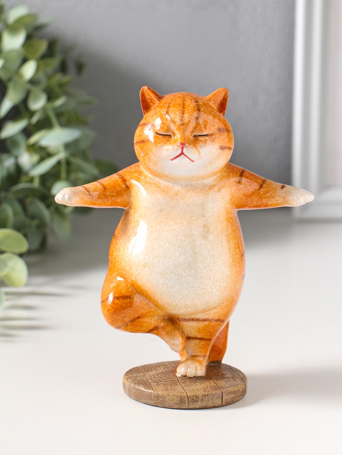 Сувенир полистоун лак "Пухлый кот-йог" 12х7х14,7 см