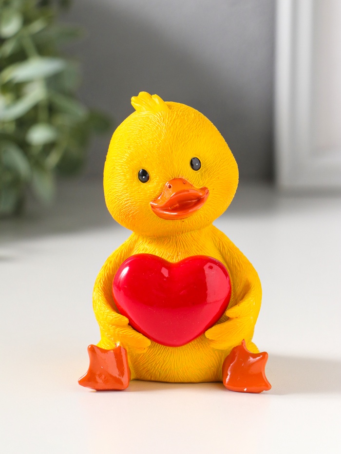 Сувенир полистоун лак "Жёлтый утёнок с красным сердцем" 6,5х6,2х9,5 см