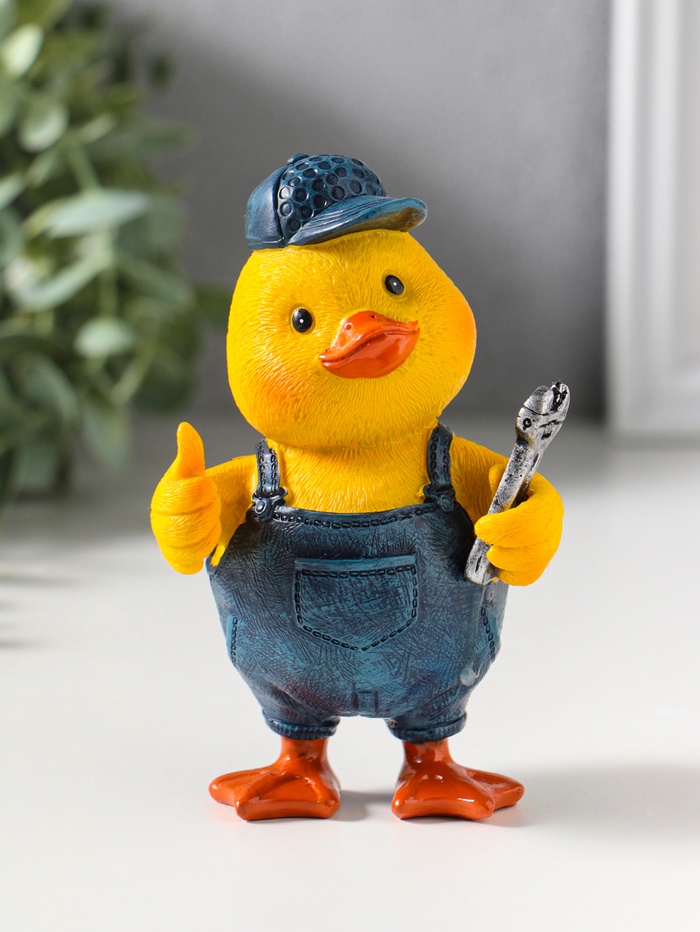 Сувенир полистоун лак "Жёлтый утёнок - мастер на все руки" 7,5х6,5х12 см