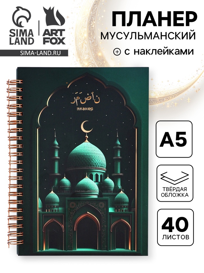 Мусульманский планер А5, 40 листов с наклейками "Рамадан. Зелёный"
