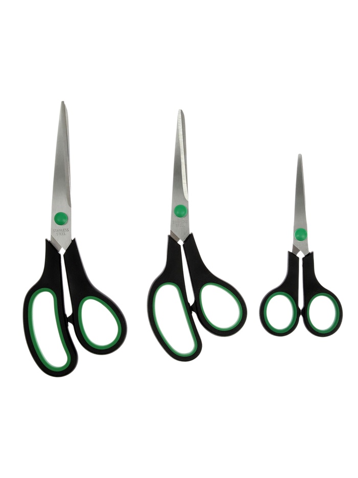 Ножницы канцелярские, набор, 3 штуки, 14 см, 19.5 см, 21 см