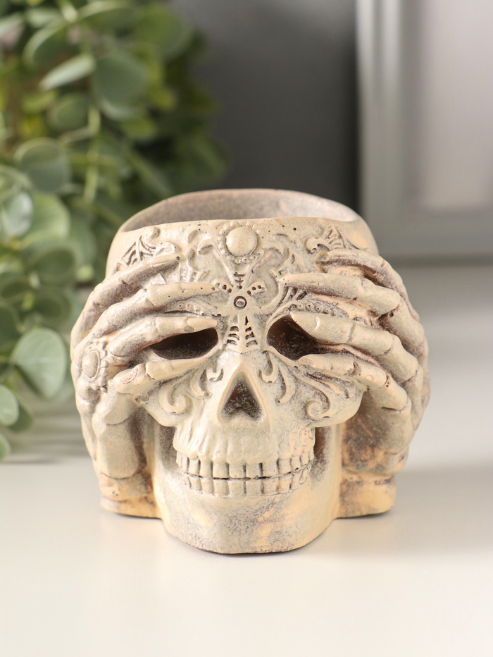 Подсвечник "Череп с орнаментом" 7х8 см, бежевый