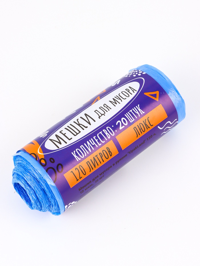 Мешки для мусора в рулоне UPAK LAND 60 л, голубые, ПНД, толщина 8 мкм, 50×80 см 20 шт.