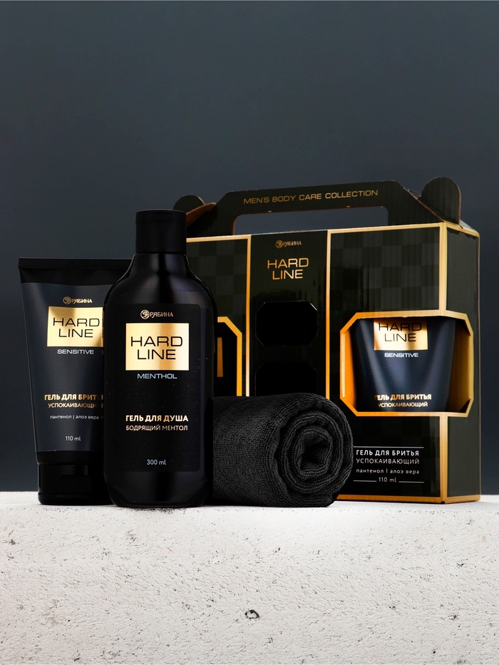 Подарочный набор косметики: гель для душа 300 мл, гель для бритья 110 мл, полотенце, HARD LINE
