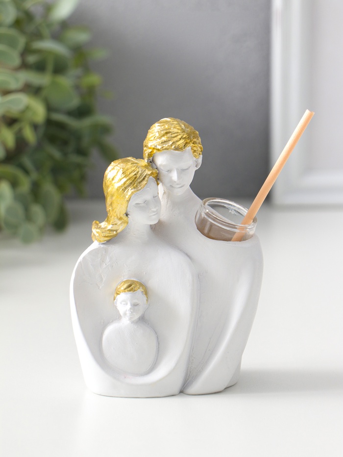 Аромадиффузор для эфирных масел с палочками «Родители с ребёнком», полистоун, белый с золотом, 4.3×8×11 см