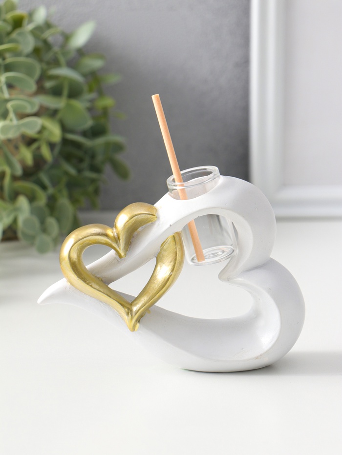 Аромадиффузор для эфирных масел с палочками «Сплетённые сердца», полистоун, белый с золотом, 4.7×12.3×9 см
