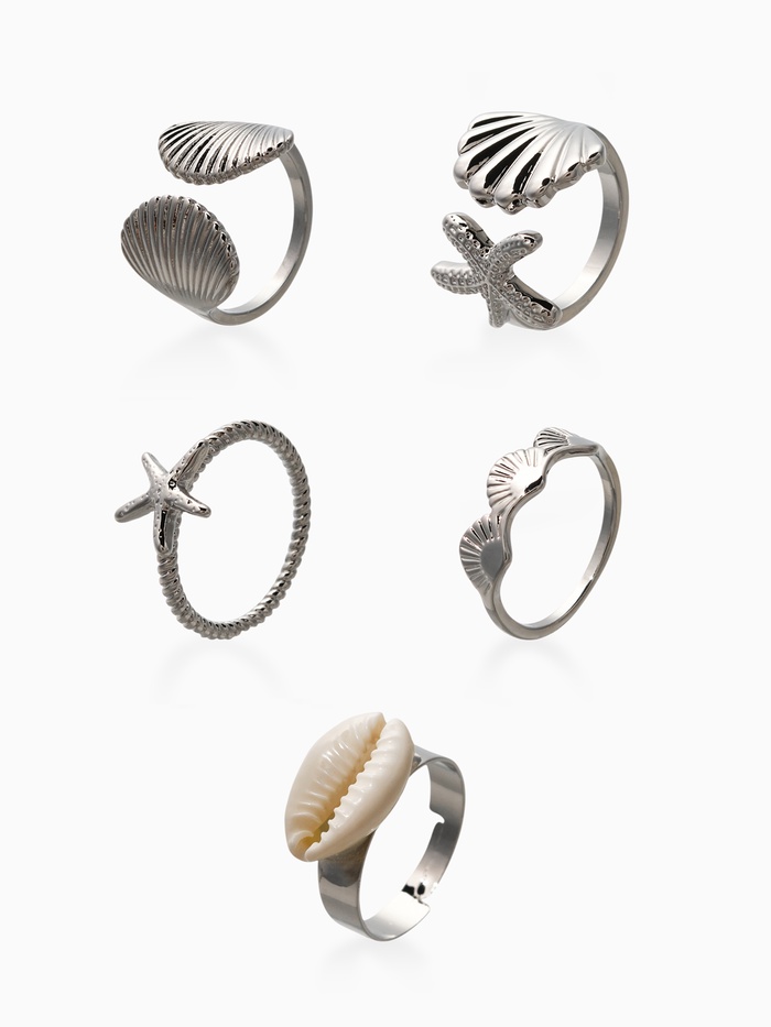 Набор колец 5 шт "Новый стиль" ракушки, размер МИКС, цветные в серебре