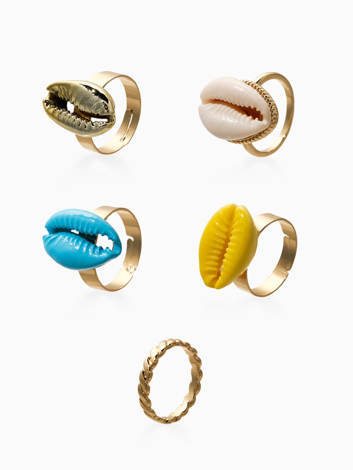 Набор колец 5 шт "Новый стиль" ракушки, размер МИКС, цветные в золоте