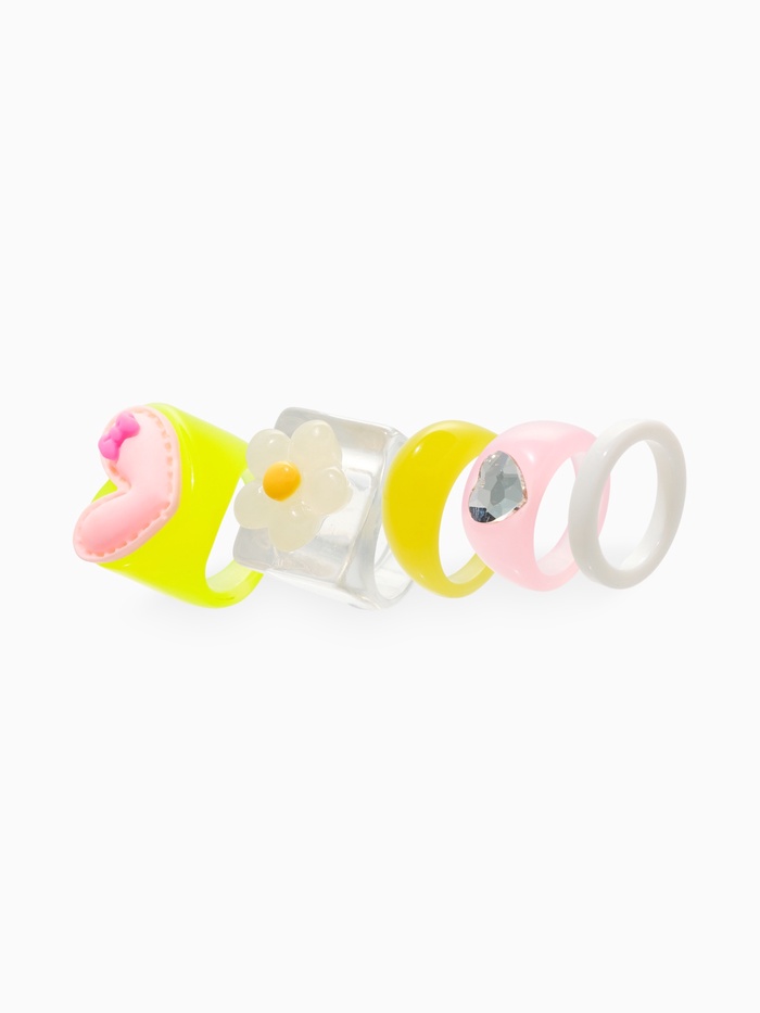 Набор колец 5 шт. «Стиль лёгкий. Цветы и сердечки», размер МИКС (17-19), цветные