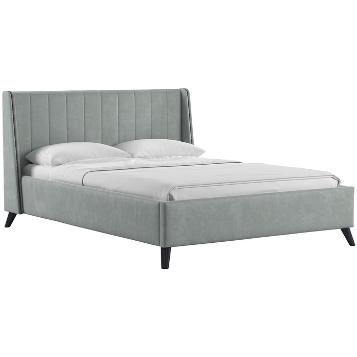 Кровать двуспальная, с основанием, спальное место 1600×2000 мм, велюр, цвет серый