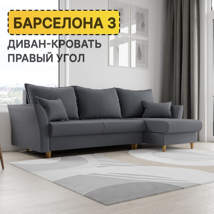 Угловой диван «Барселона 3», ПЗ, механизм пантограф, угол правый, велюр, цвет квест 025
